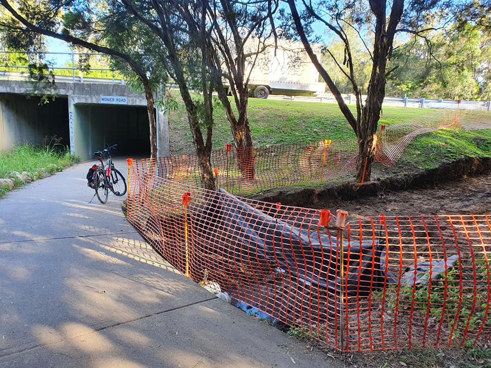 On the way, we discovered the start of a new path connecting Monier Road to the cycleway underneath Seventeen Mile Rocks. This is great news for those (regular) times when the underpass is under water!