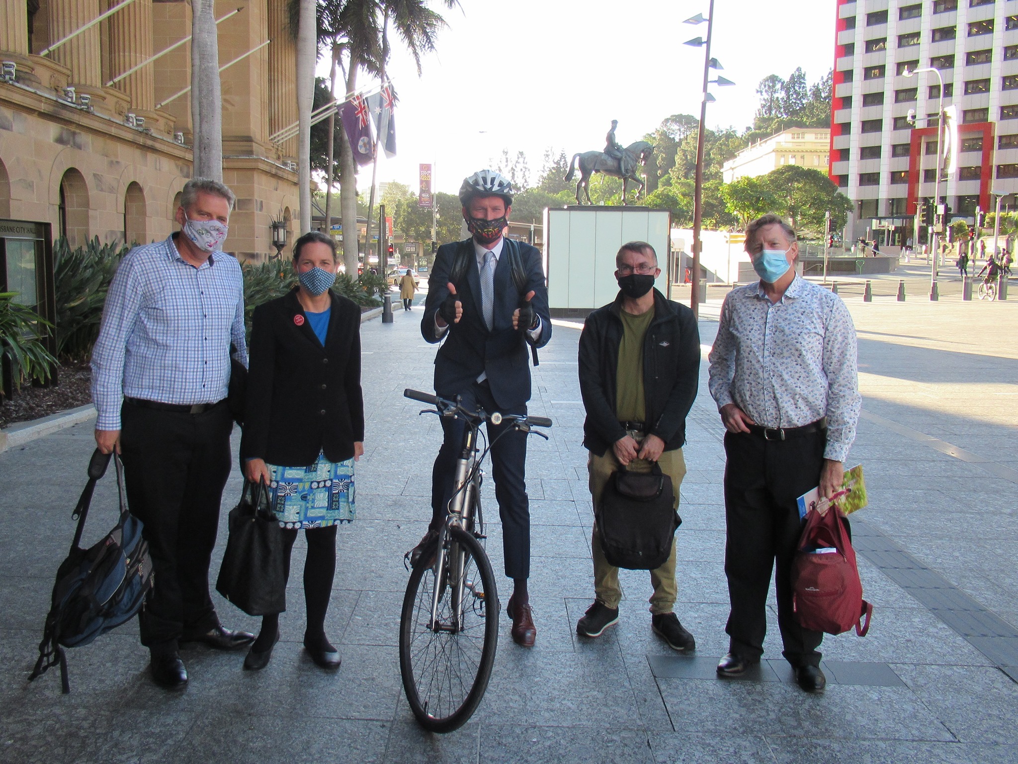 Kudos to Minister Bailey for cycling to City Hall for the meeting in full business attire. That’s 100% normal in many European cities; hopefully soon much more common in Brisbane.