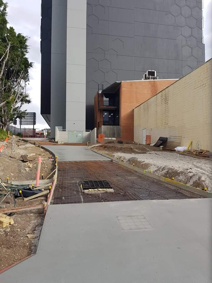 Concrete had been poured on the North Brisbane Bikeway between Campbell St and O’Connell Tce, Bowen Hills. It has been over a year since the old pathway was closed. We have had word that the builders are aiming to have it open mid August. Did someone say Ekka??