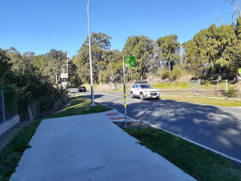 We’re torn between wanting to see a rail crossing here, and the sinking knowledge that Queensland Rail will insist on a squeeze point with signs instructing cyclists to dismount. (How do other states seem to manage rail crossings for pedestrians and cyclists which aren’t so hostile, but we can’t here?).