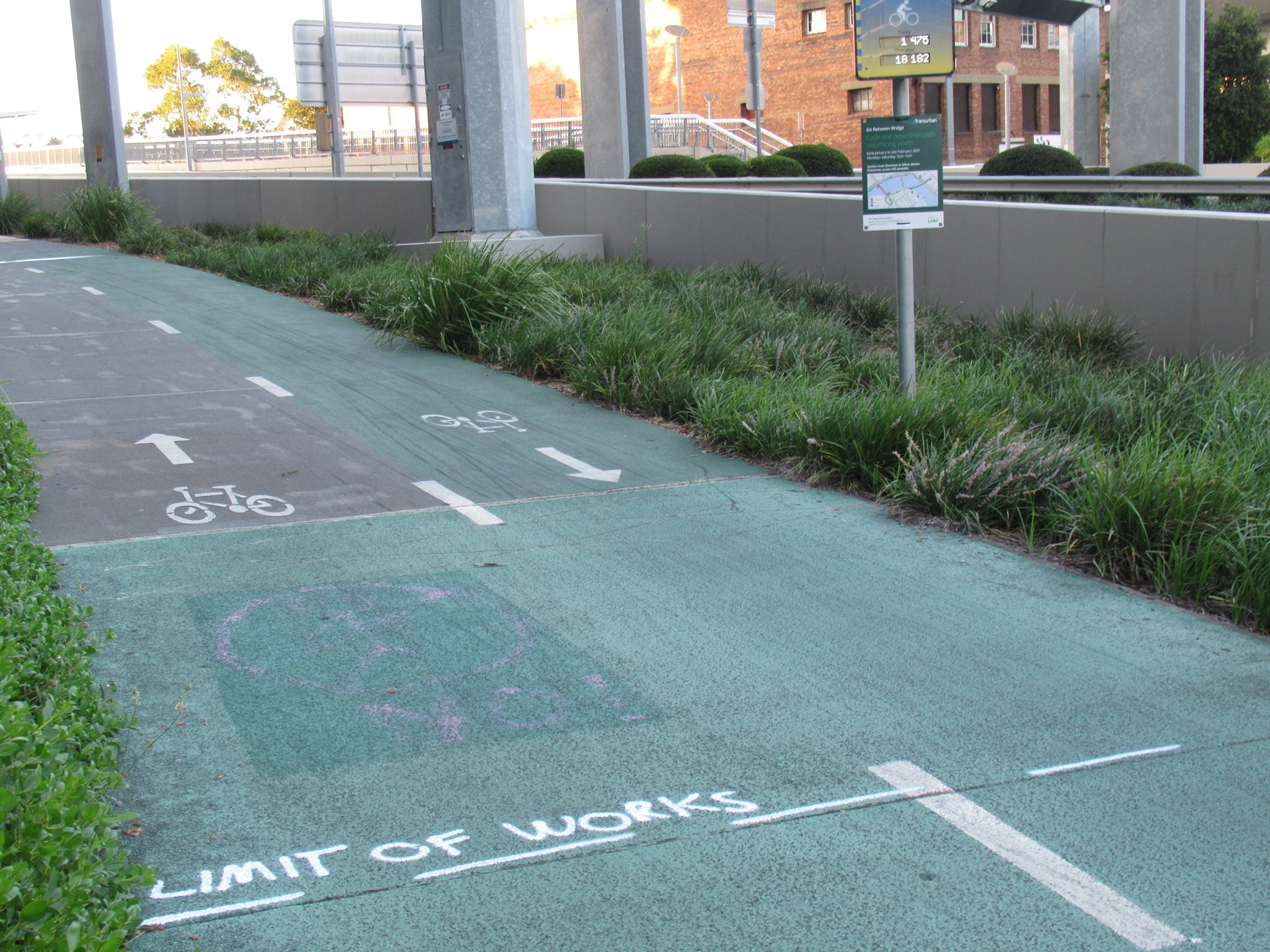 “In mid-January 2021, we commenced resurfacing the Go Between Bridge cycle and pedestrian pathways. Due to wet weather and unexpected construction delays, works are currently scheduled to finish in April 2021. Works will shortly move to the pedestrian path and pedestrian traffic wanting to utilise the bridge will move to the cycle path – cyclists will still be required to follow the signed detour route or dismount and walk across the bridge.