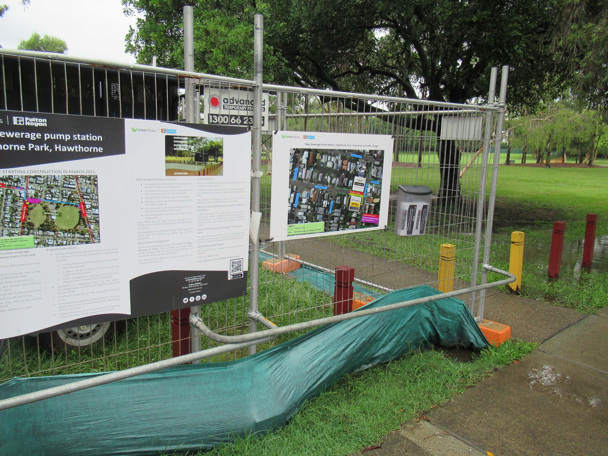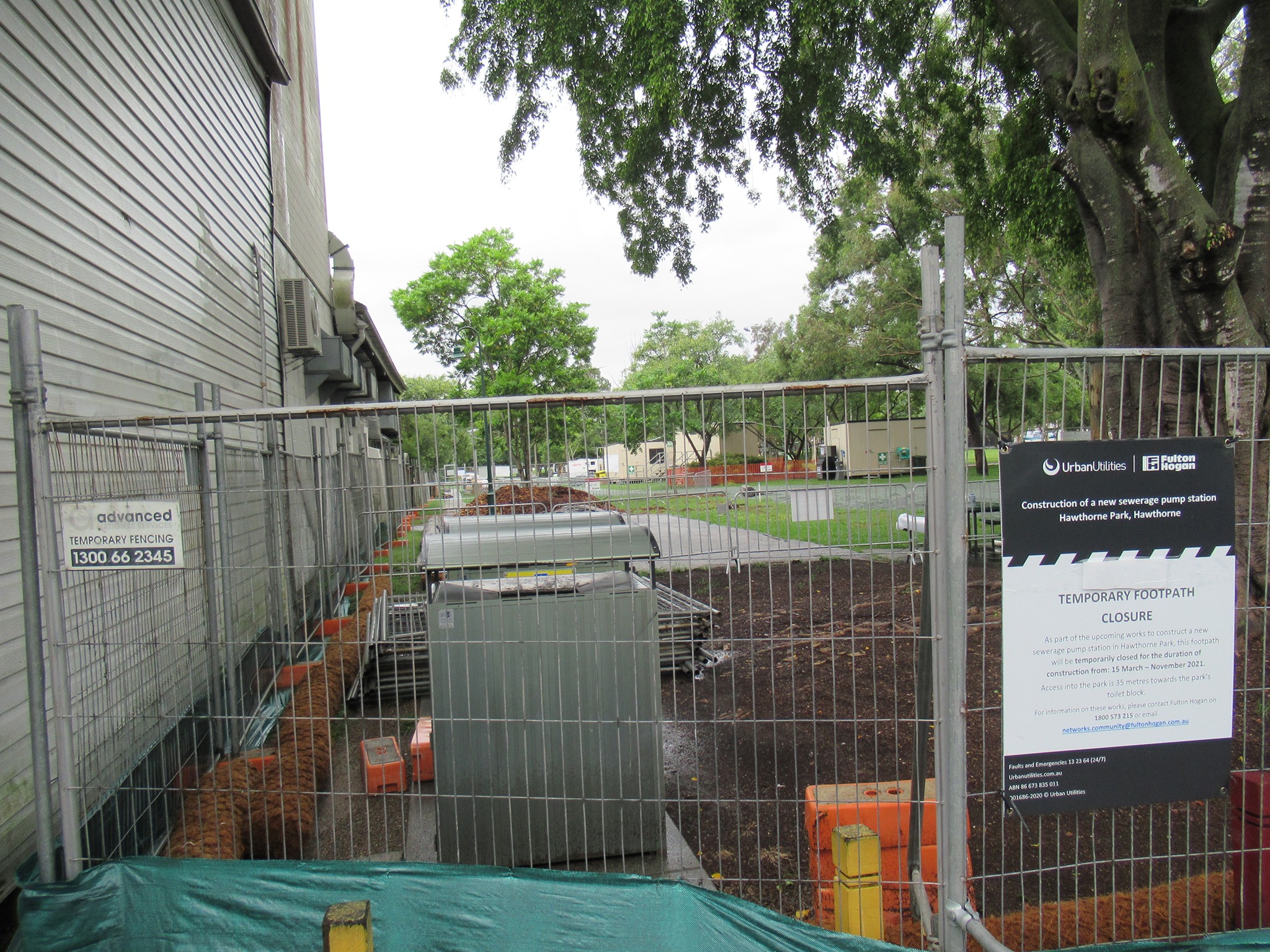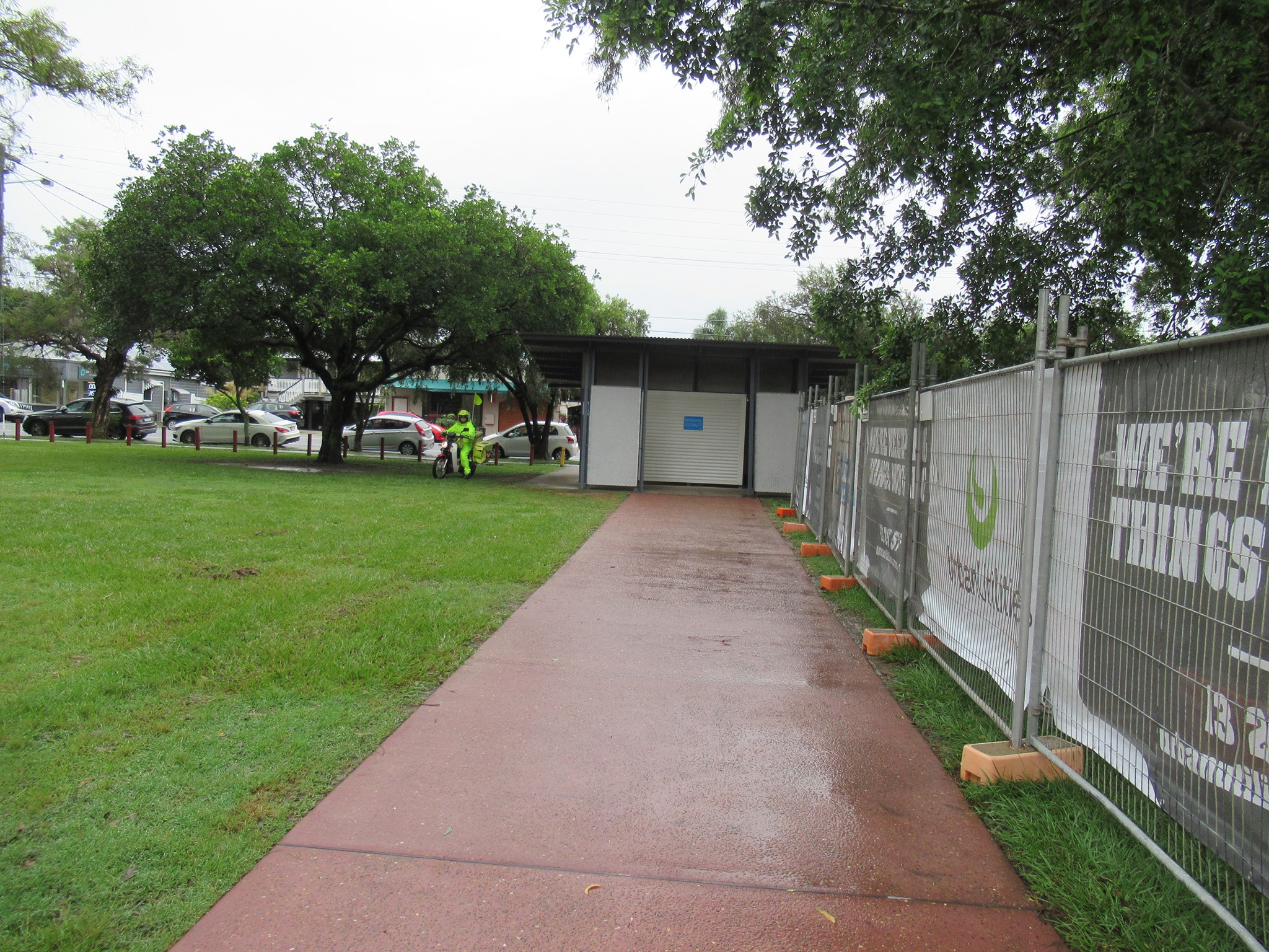 In Hawthorne, EaST BUG had asked the contractor responsible for the Queensland Urban Utilities sewer works in Hawthorne Park if they could create a temporary path so the detour route wasn’t a choice of walking/wheeling across the grass (this week through the mud) or making two 90 degree turns and conflicting with people entering or stepping out of a toilet cubicle! They were pretty disappointed to see that one small concession wasn’t provided. These works are expected to be going on until the end of the year.