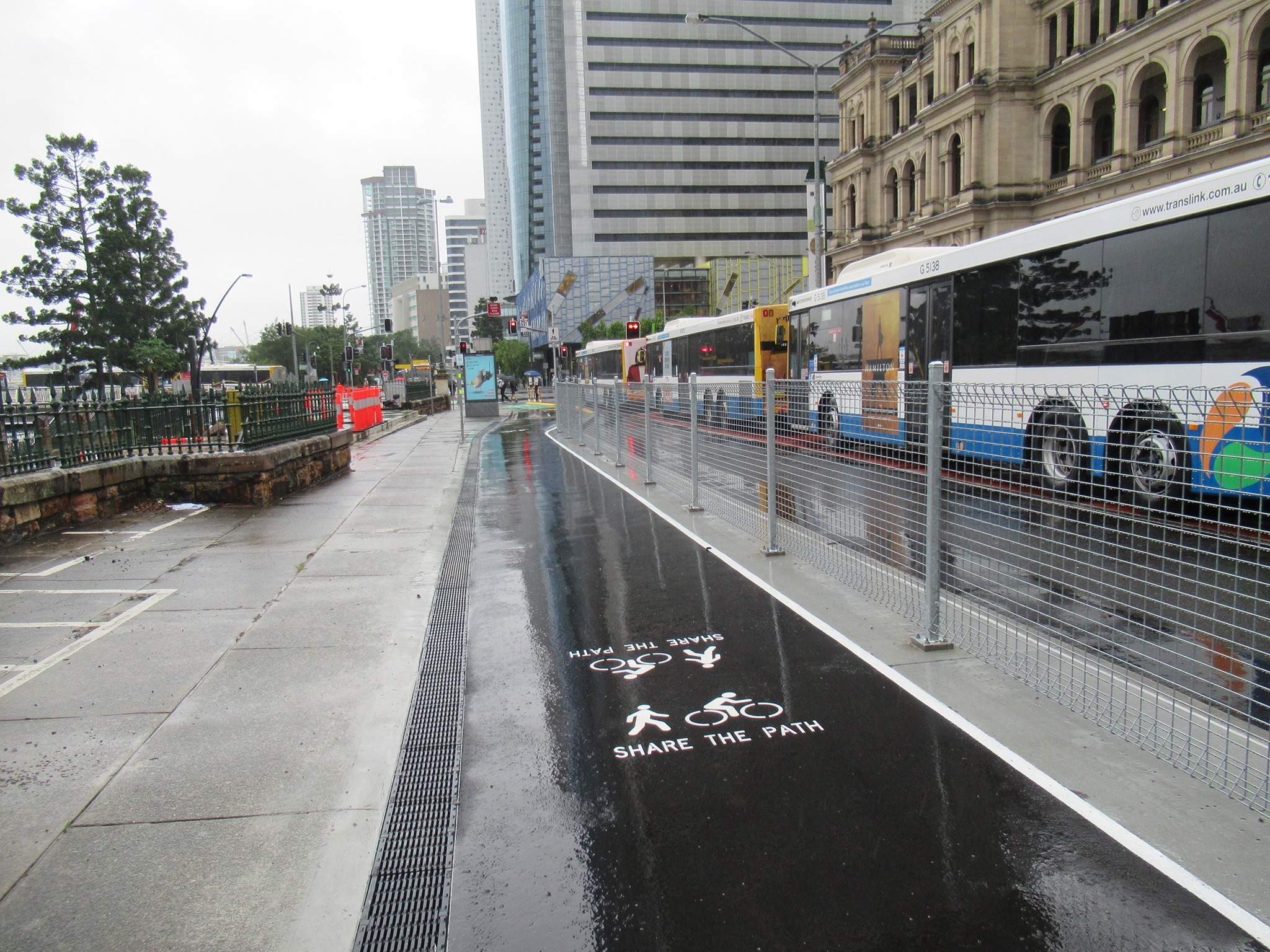 “Development within the city centre transition precinct … protects and enhances the Normanby Bikeway link to Parkland Boulevard, establishing an adjacent pedestrian pathway to facilitate greater separation of pedestrian and cyclists within the PDA.”