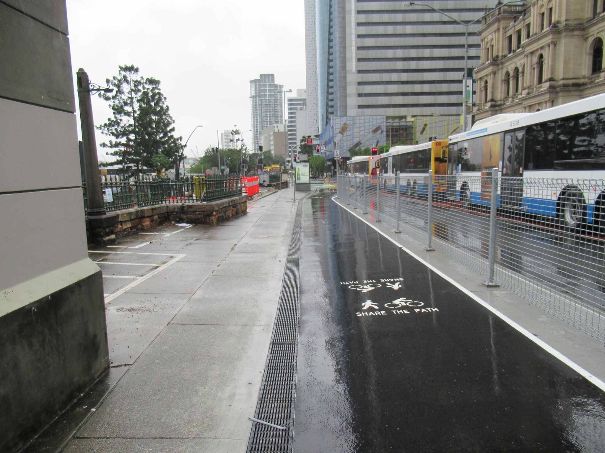 It’s not just about a few puddles and flooded paths; almost everywhere you look around the city and suburbs you can see examples of design and maintenance priorities that marginalise people trying to walk or cycle and to access public transport. If Brisbane is serious about setting ourselves up to be an Olympic city, we need more focus on the small things that add up to a big difference in whether active transport is a safe and pleasant experience!