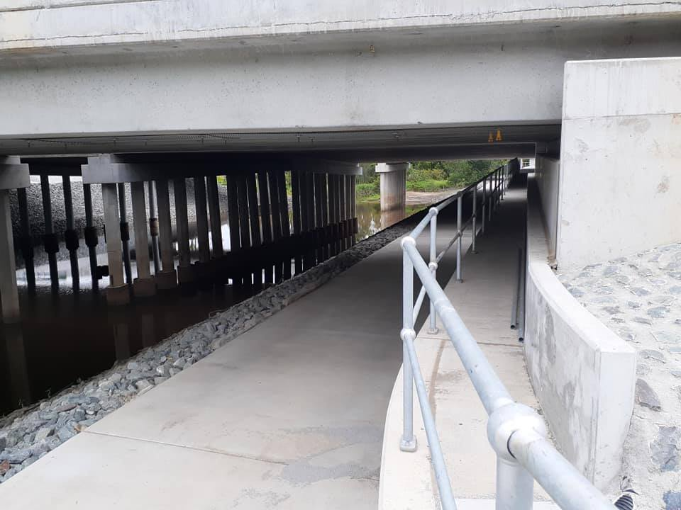 The old underpass next to Oxley Creek was closed in January 2018 while this massive project rebuilt the motorway and service road (including multiple bridges), and created a new shared path and separated cycleway between Granard Rd and Oxley Creek, and a new shared path from there to Bannerman St, Oxley. We had a sneaky look at the underpass over Christmas. Hopefully it will open soon after work recommences in the new year.