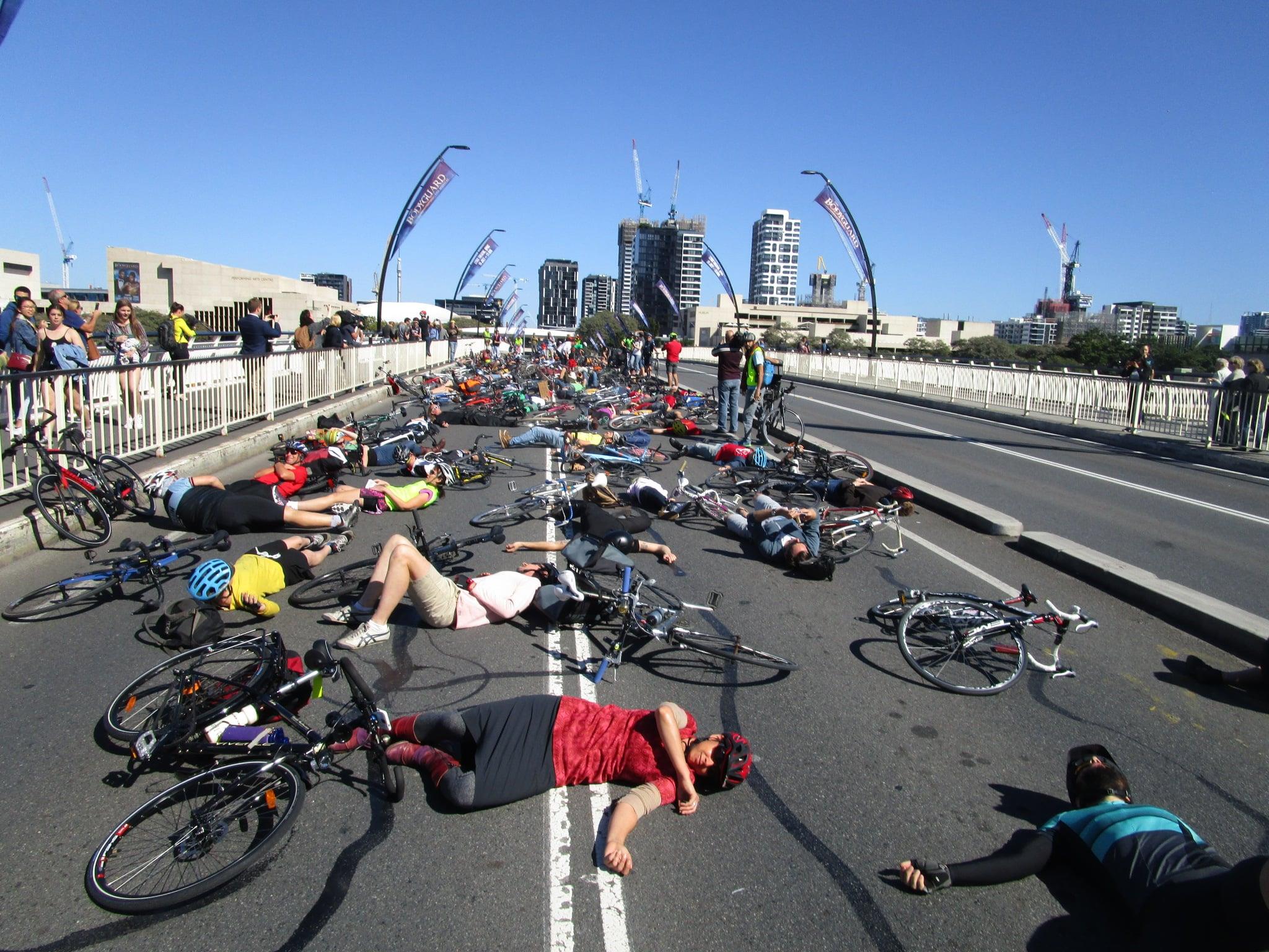 Victoria Bridge will close to general motor vehicle traffic on 24 January 2021, to facilitate both the Brisbane Metro project and the CityLink Cycleway trial. This will increase the capacity of both public and active transport to and from the CBD. We’re excited, as we’ve campaigned for this important connection for many years, including organising four ‘Big Push‘ community rides across the bridge and staging a ‘die-in’ protest when the original plans for Brisbane Metro didn’t include a cycleway.