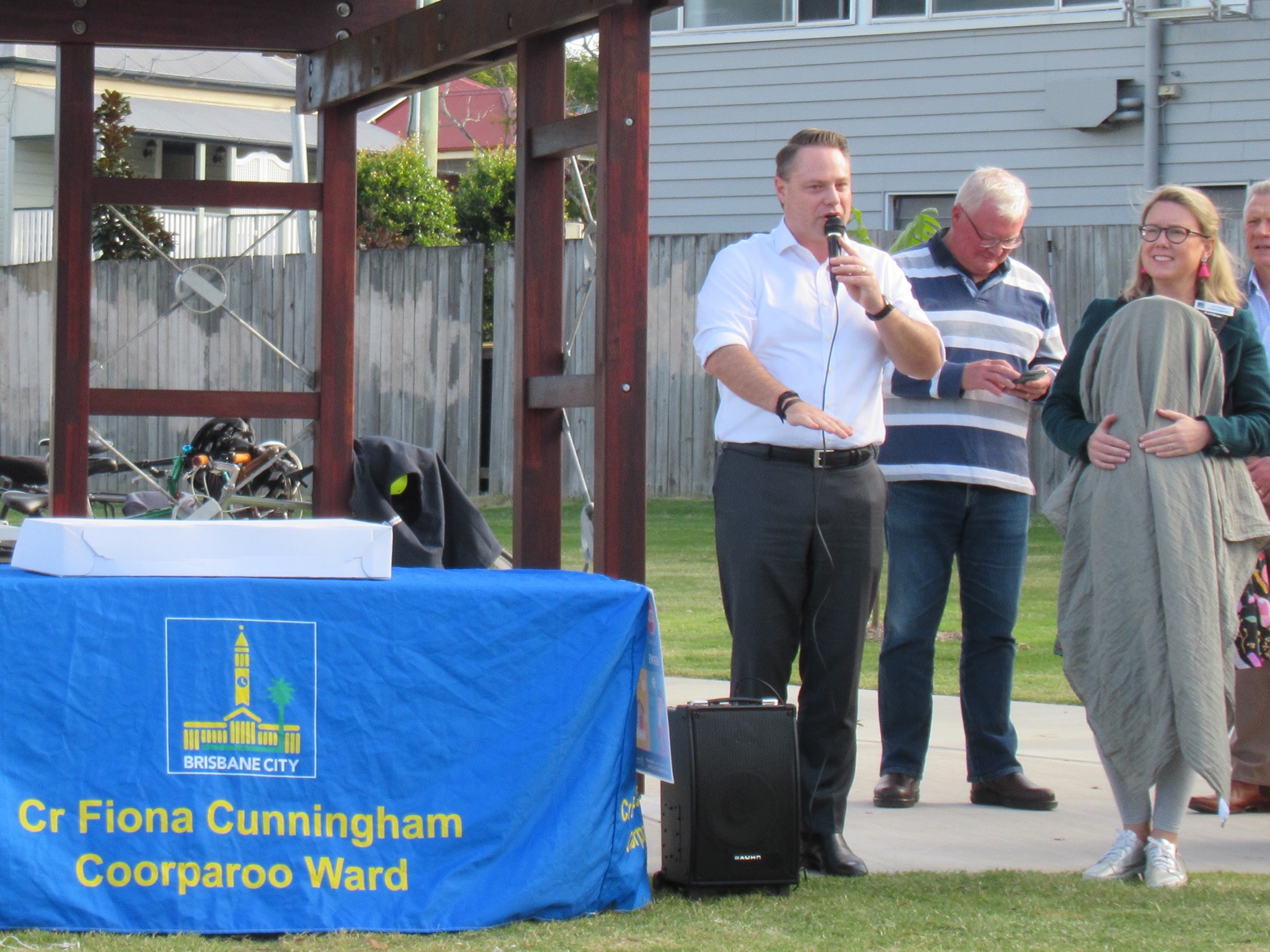Lord Mayor Adrian Schrinner and Councillor Fiona Cunningham opened stage 1 of the Hanlon Park rejuvenation at Stones Corner on the weekend. The local kids didn’t need any invitation to go and play in the creek – although they were momentarily distracted by cake.