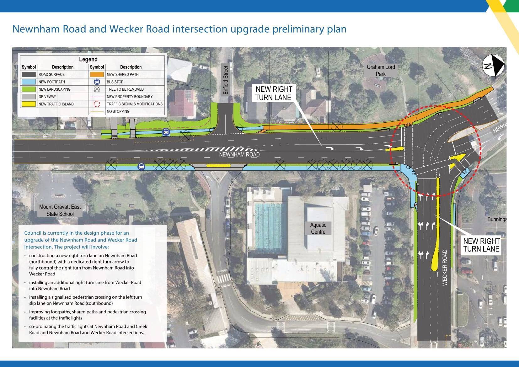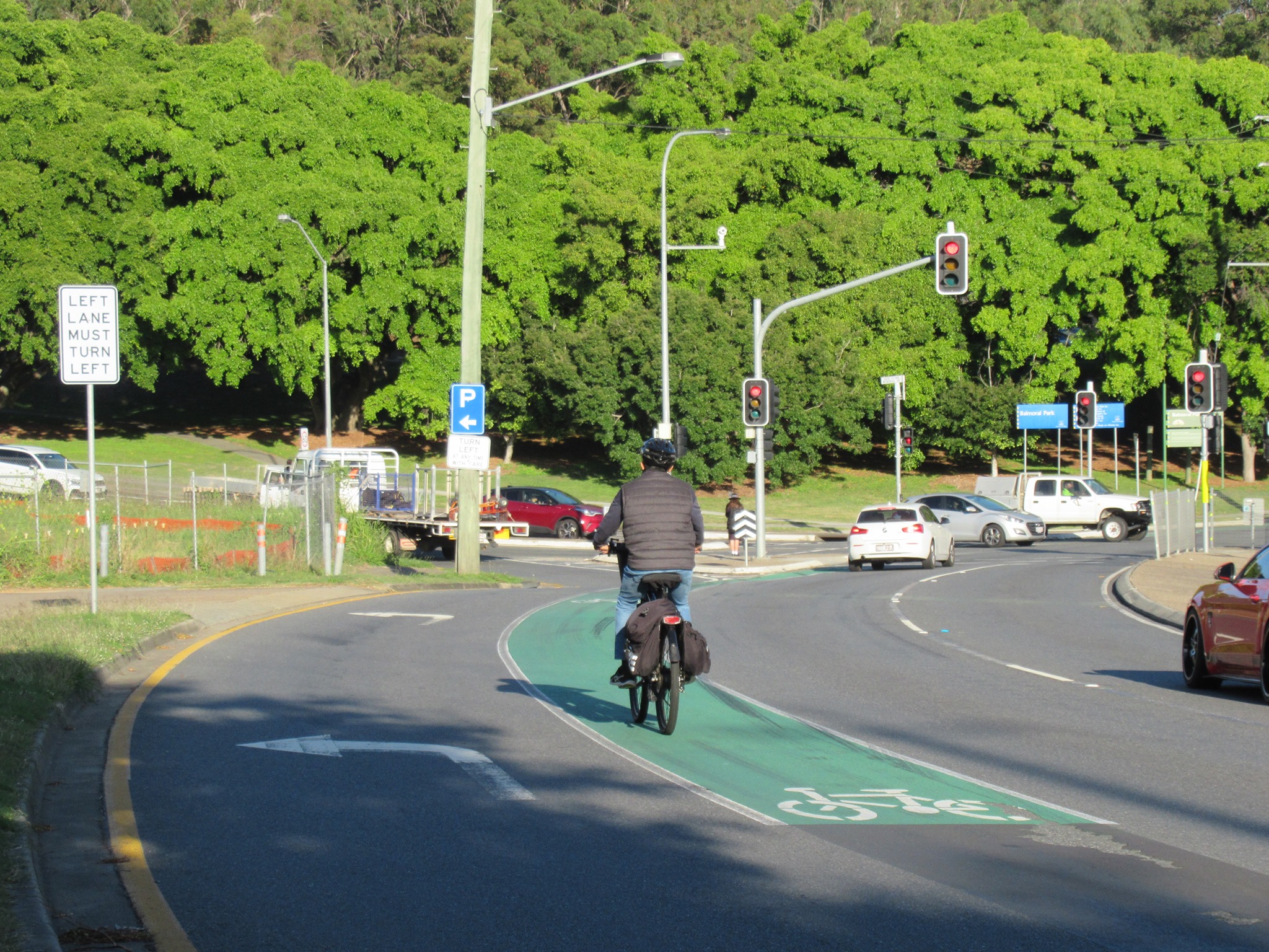 On Tuesday, Council’s Infrastructure Committee discussed the “upgrade” of the intersection of Wecker Rd and Newnham Rd, Mount Gravatt East. The plans don’t appear to have changed significantly since we wrote about them in October last year. As we noted then, it’s a shame this $13.7million intersection widening project doesn’t provide better cycling connections – particularly between Wecker Rd and Creek Rd which are on the agreed Principal Cycle Network Plan.