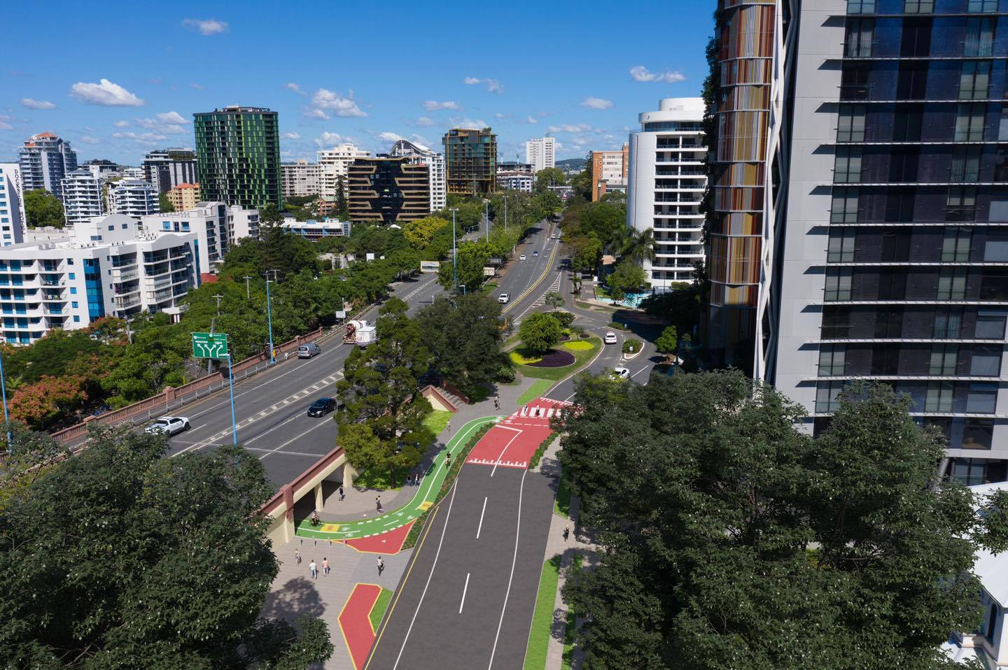 The plans include a new dedicated walking and cycling connection between Main Street and Deakin Street that will provide direct, dedicated access for pedestrians and cyclists between the bridge landing at Scott Street and the eastern side of the Kangaroo Point Peninsula, as well as ongoing travel to and from the eastern suburbs. The design includes: