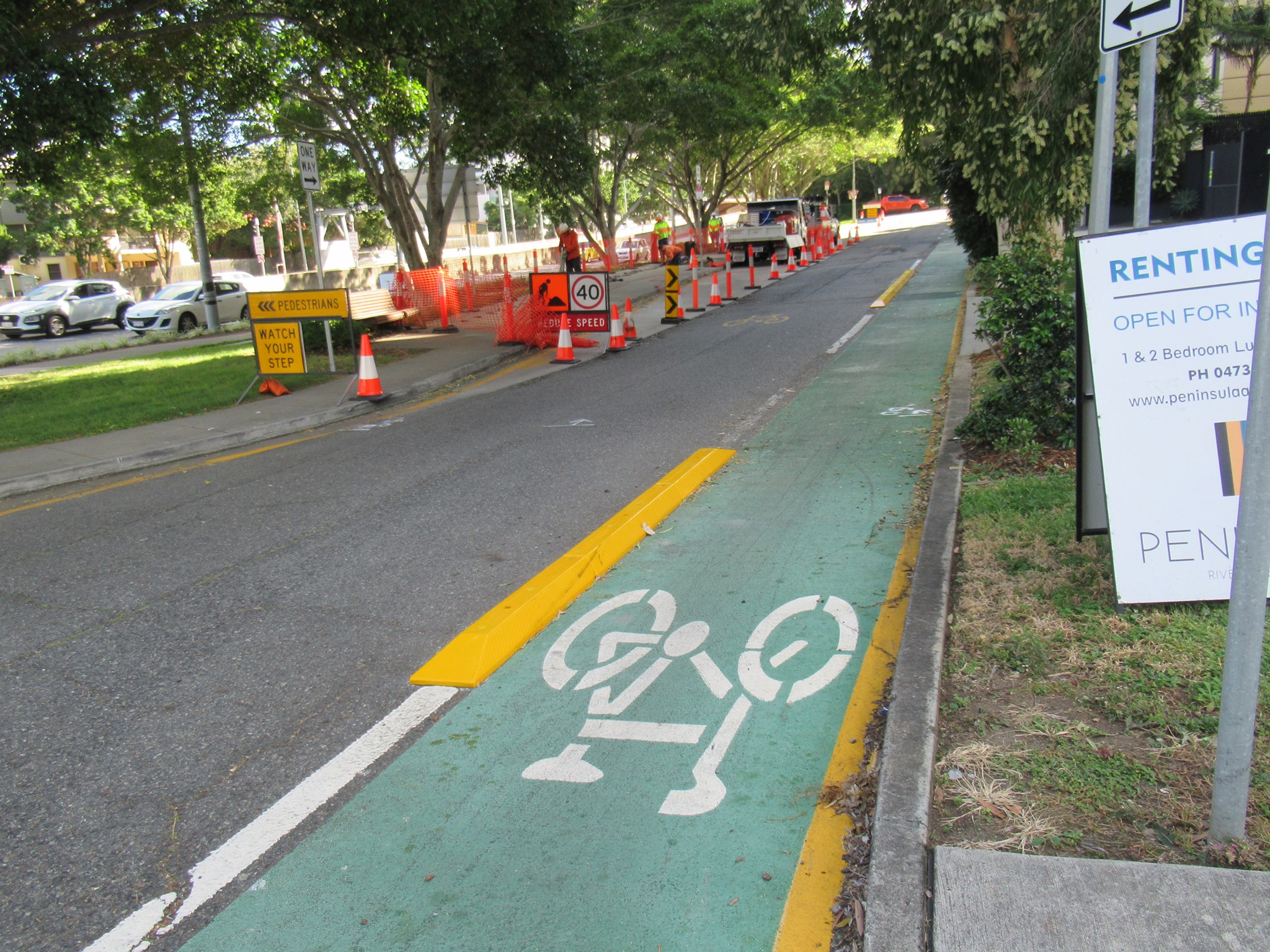 Also as part of their “safety upgrade on Wynnum Road, Morningside, between Rossiter St and Riding Rd”, Council have advised they will be installing “retrofit separation devices” (RSD) “along the lane dividing lines between vehicle traffic and cycling lanes, to prevent vehicles from encroaching into the cycling lanes” at the intersection of Wynnum Road and Junction Road.