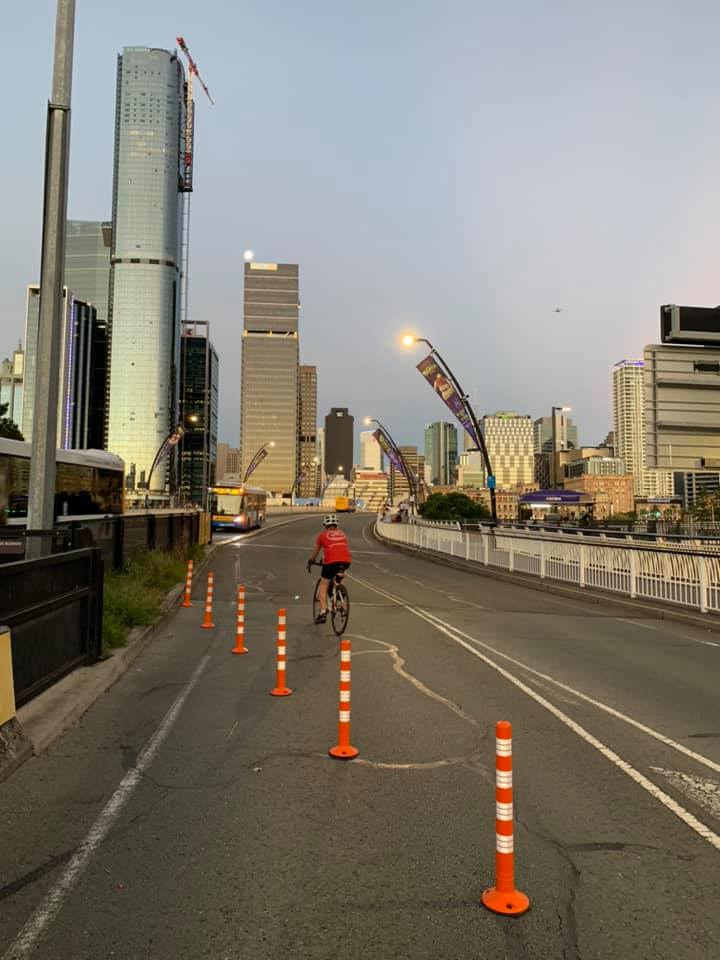 In the meantime, we’ve been enjoying being able to cycle across Victoria Bridge without fear of being harassed by drivers, or having to squeeze along the busy footpath. Removing general traffic from this bridge is a small but significant step toward a CBD that is less choked with cars. We love it!