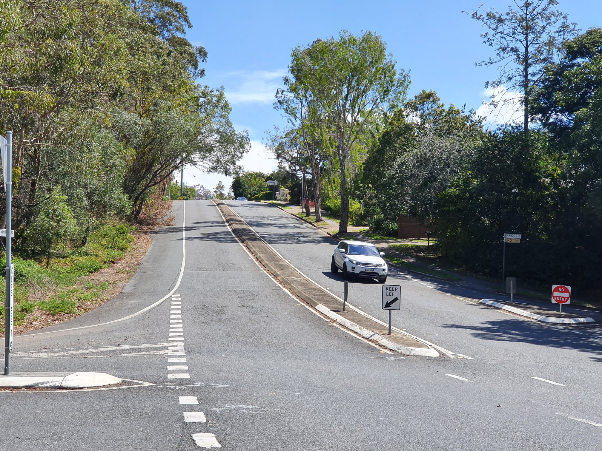 A Queensland Parliament Enquiry into Cycling Issues back in 2013 recommended 30kph for single-lane urban roundabouts. But Thynne Rd is 60kph while Pashen and Burrai Steets are 50kph, and the design is such that drivers barely need to slow down. Regular evidence like this suggests some don’t bother slowing at all!