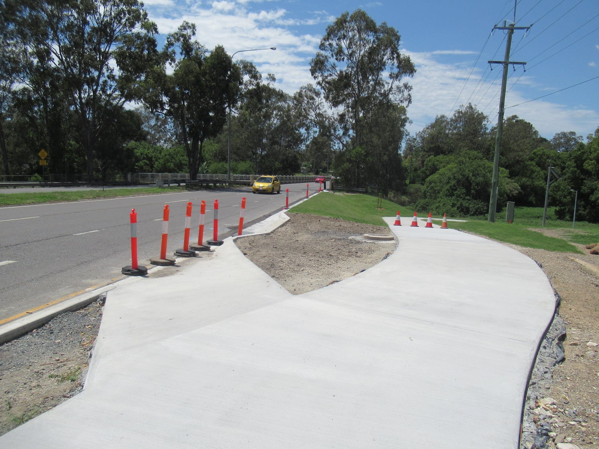 Elsewhere in Carindale, it’s good to see some recent repairs to the start of the Warick Creek Bikeway, off Greendale Way. (It’s a pity Council didn’t remove the banana bars at the same time as the concrete works though.)