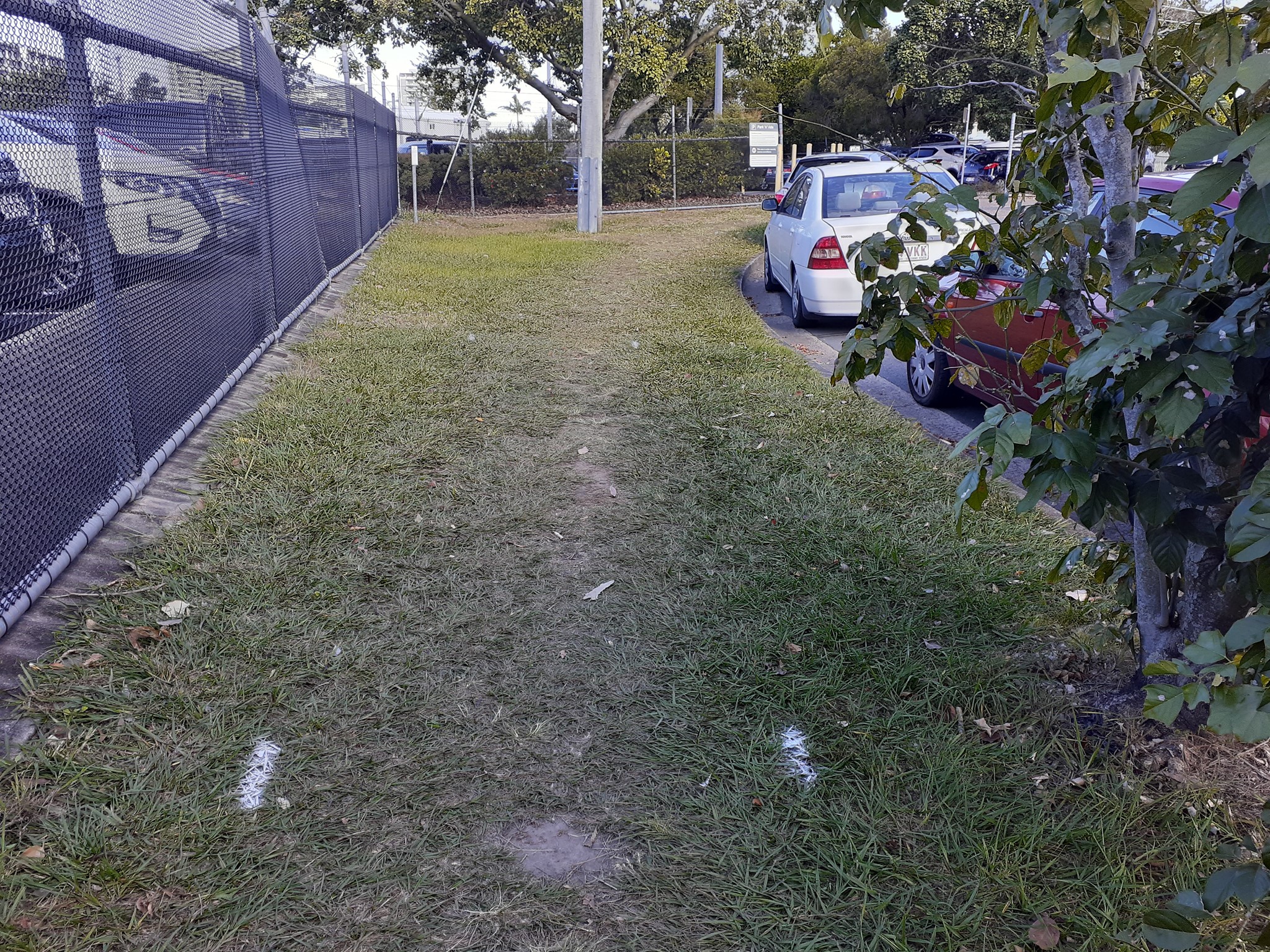 It looks like the mulch has been raked back recently, but last week the roundabout in Morningside at the intersection of Thynne Rd with Pashen St/ Burrai St was developing quite a trench from vehicles driving over the top of it. Council insists this roundabout is perfectly safe, but the geometry is such that drivers barely slow down. There’s regular evidence of people driving over the centre island, or into the fences on the corners. Fortunately, as far as we know, none of these incidents have impacted people walking or cycling here (including to reach the childcare centre on the corner, or the nearby primary school), but it feels quite uncomfortable.