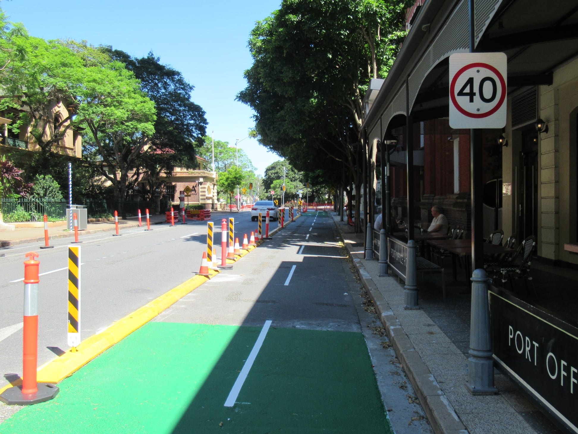 - install signage and a material separator to create the bike lane under the Story Bridge as required in the plans, and