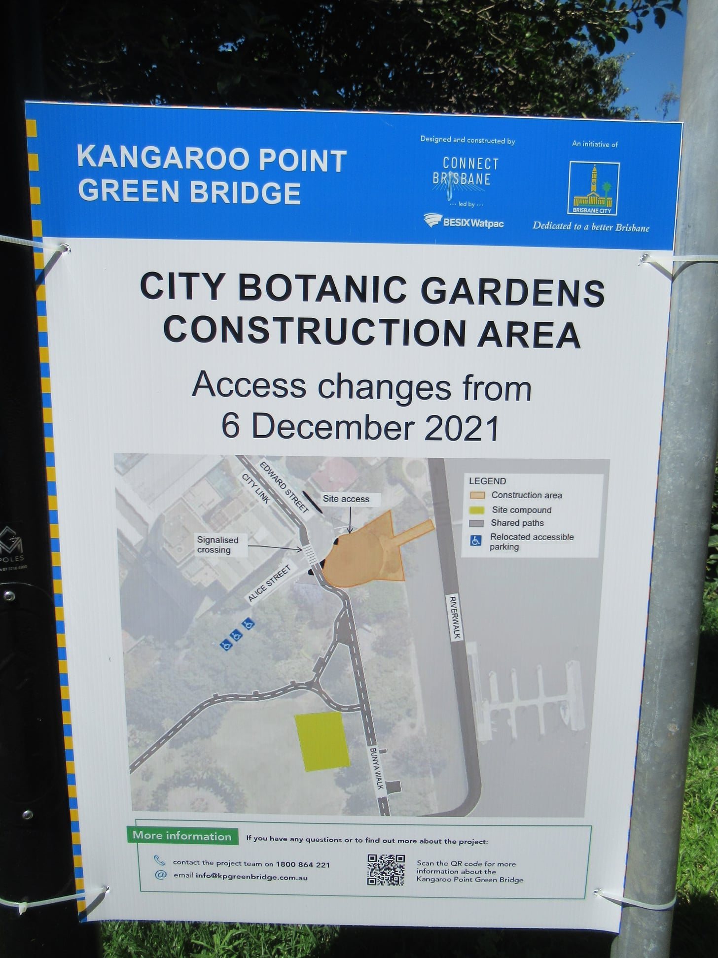 We understand that the lights for the signalised crossing at Alice St are due to be switched on this week, and then work will begin on the construction compound for the CBD to Kangaroo Point green bridge!