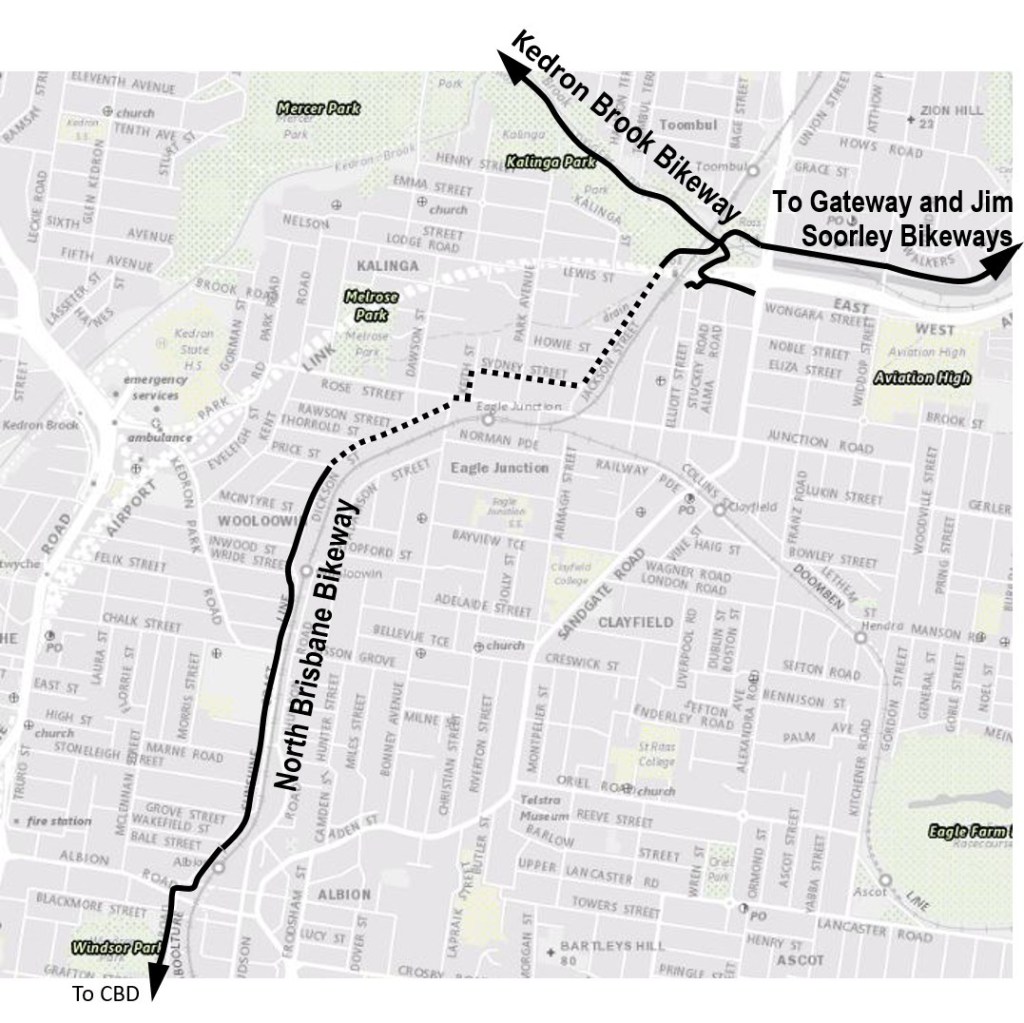 - The bikeway will provide safe connections to the shops, restaurants and services at Eagle Junction for people in nearby suburbs including Wooloowin, Albion and Lutwyche.