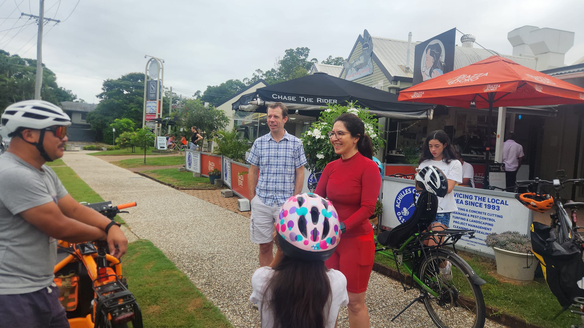 On Saturday, Leili Golafshani – Labor’s candidate for Jamboree Ward joined Erica, Os, Aaron and their kids, as well as Chris from Brisbane West BUG to experience a typical local shopping trip by bike.