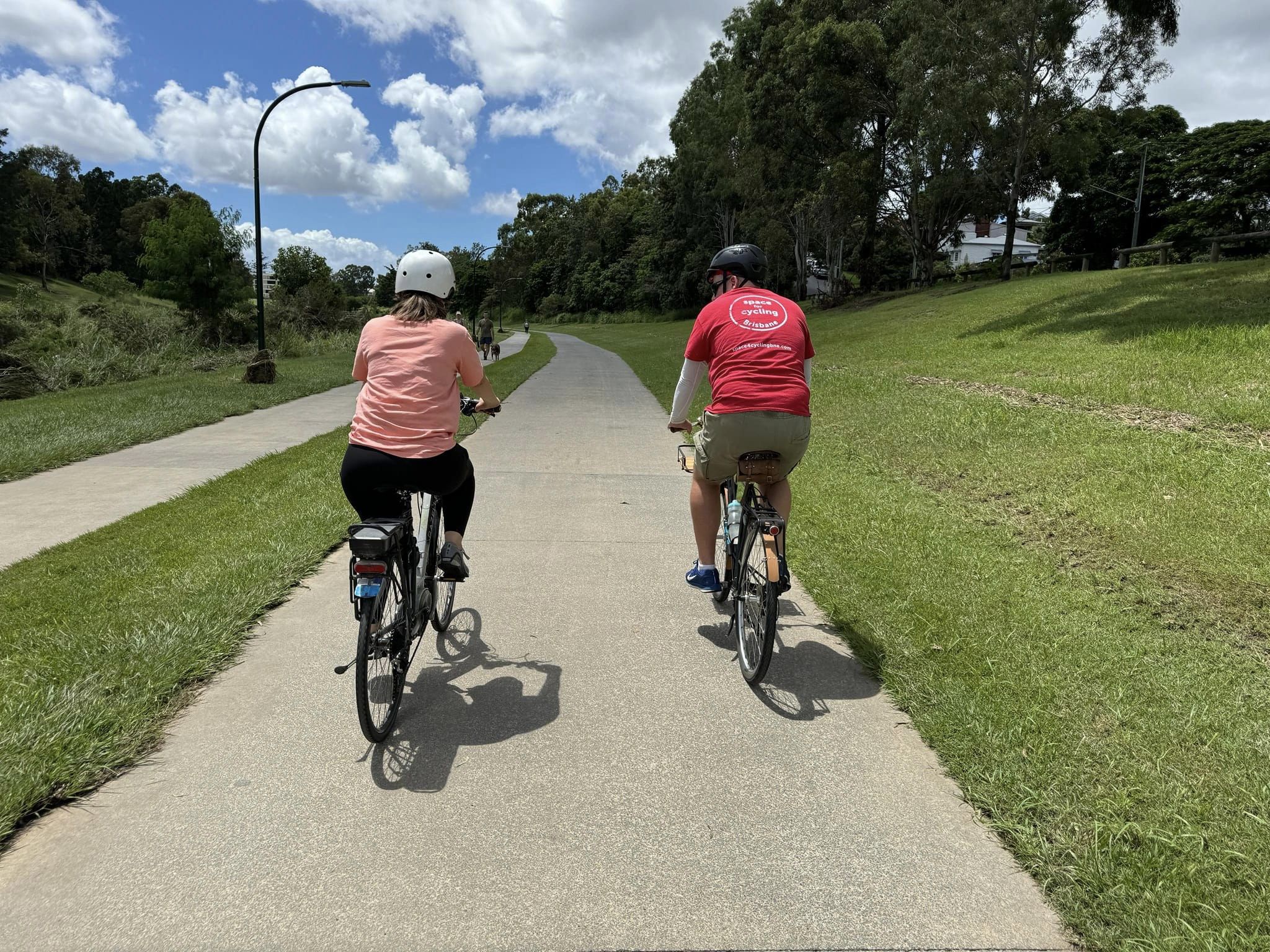 Stephen and Andrew from Brisbane North BUG recently went for a ride with Councillor Danita Parry, the LNP candidate for Marchant Ward. When Danita previously lived at Windsor she used to ride to the city on weekends, however the arrival of children changed that. As they say, it’s like riding a bike and Danita was quick to relearn her handling skills. She even had the pleasure of testing out an e-bike (which she really liked).