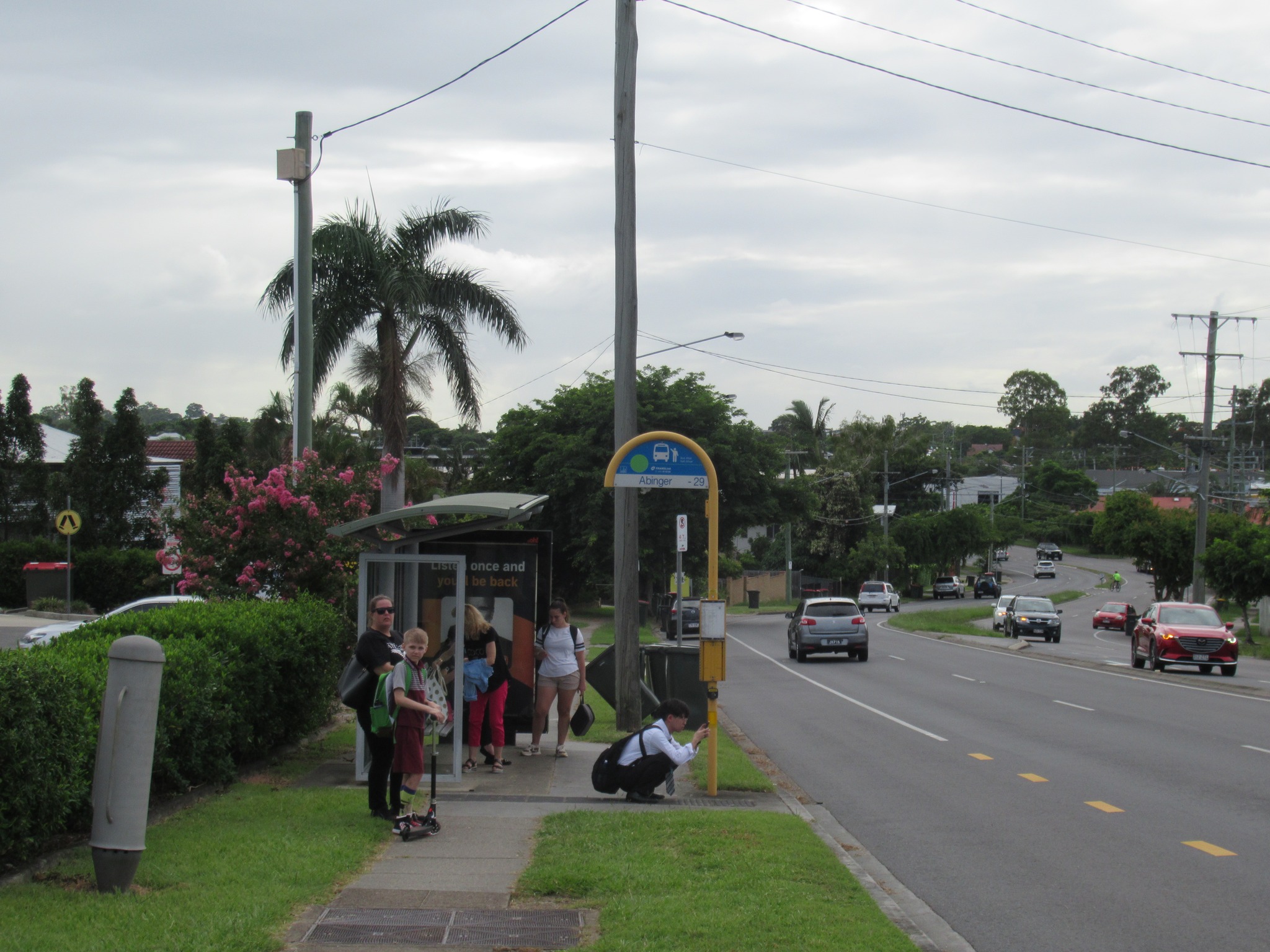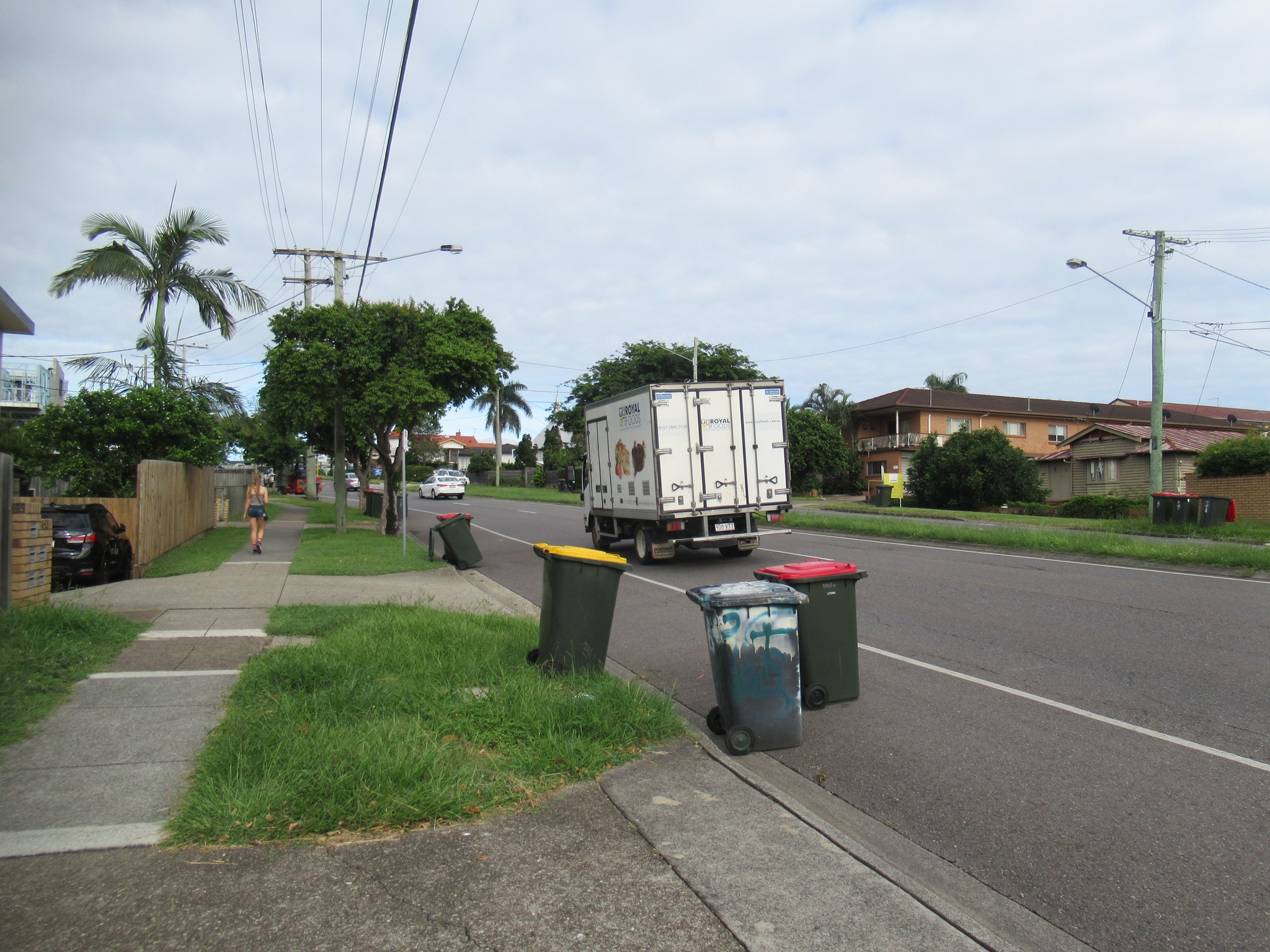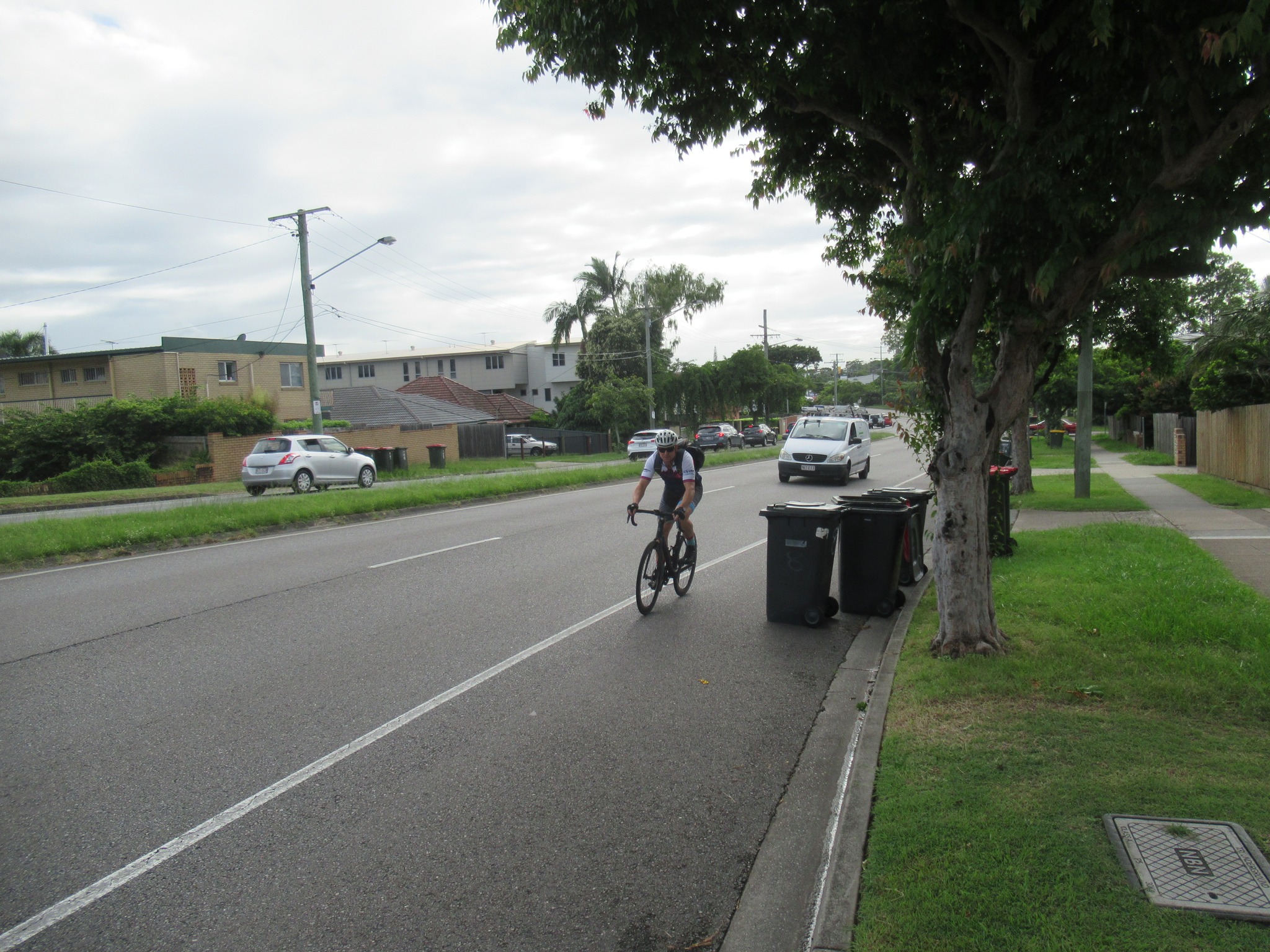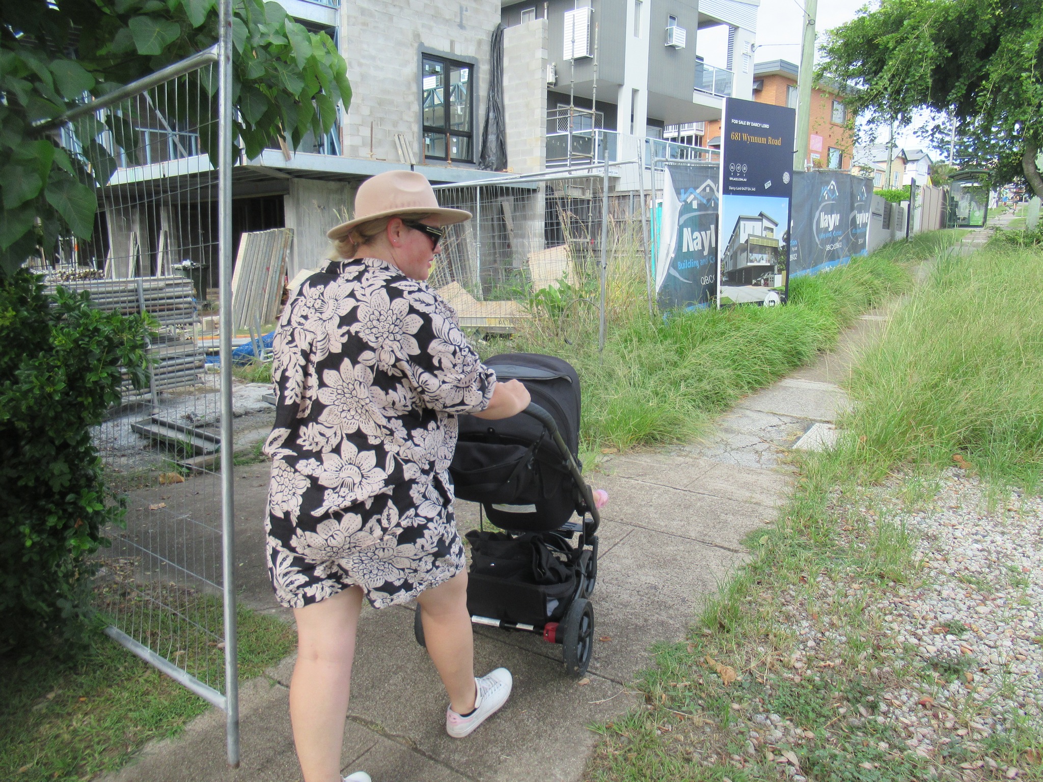 Our short walk showcased a bit of everything that needs fixing in our suburbs: slip lanes where drivers don’t give way; long waits in the sun for pedestrian signals; overgrown and bumpy footpaths; and a “diversion” around a blocked footpath that is so poor it’s completely unusable for anyone with a pram, wheelchair, scooter, or walking aid. (Yes, we had to walk with the pram on busy Wynnum Rd!). We also checked out the sad plastic bollards (what’s left of them); “bike lane ends” sign; surprise protruding kerb; “Share the road” sign hidden behind a tree; and a bike lane blocked by bins and parked cars and then simply vanishing.