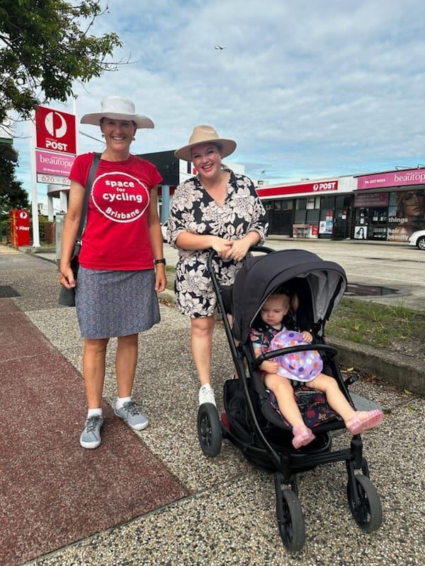 Yesterday, Belinda from East BUG caught up with her local councillor, Councillor Lucy Collier (Labor’s candidate for Morningside) and her daughter Maisy for a walk along Wynnum Road. Lucy doesn’t ride a bike these days after an injury a few years ago, but she understands how important it is for the community for families to feel safe to walk or ride in their local streets. Lucy doesn’t want kids like Maisy to miss out on the opportunity to ride to school, to sport, or to activities with their friends.