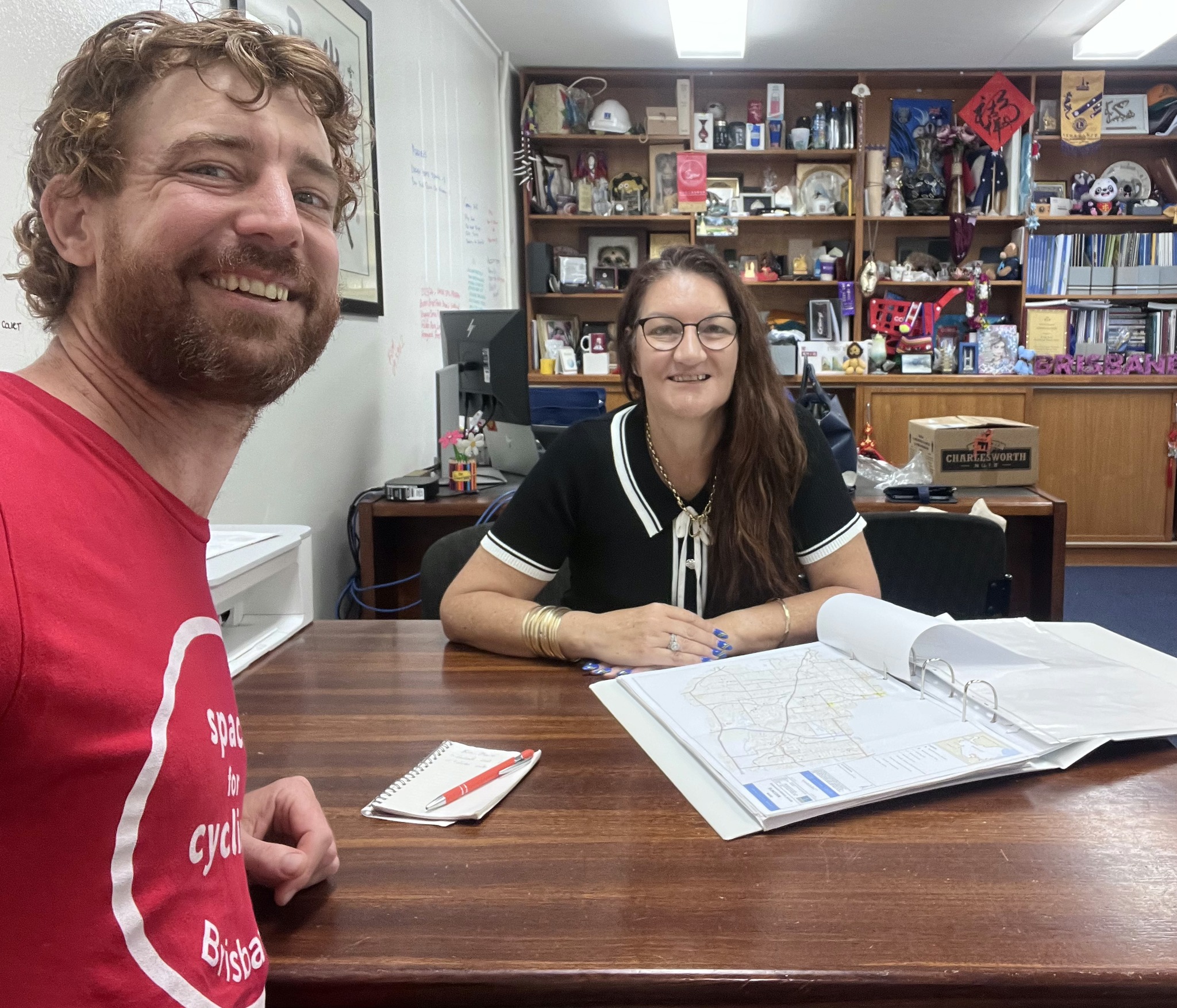 Thanks to Councillor Kim Marx (LNP for Runcorn Ward) for setting aside time to meet with Kurt from Brisbane South BUG. They discussed the people who currently ride a bike, those who don’t, and the many who might if our suburbs were more inviting places to try.