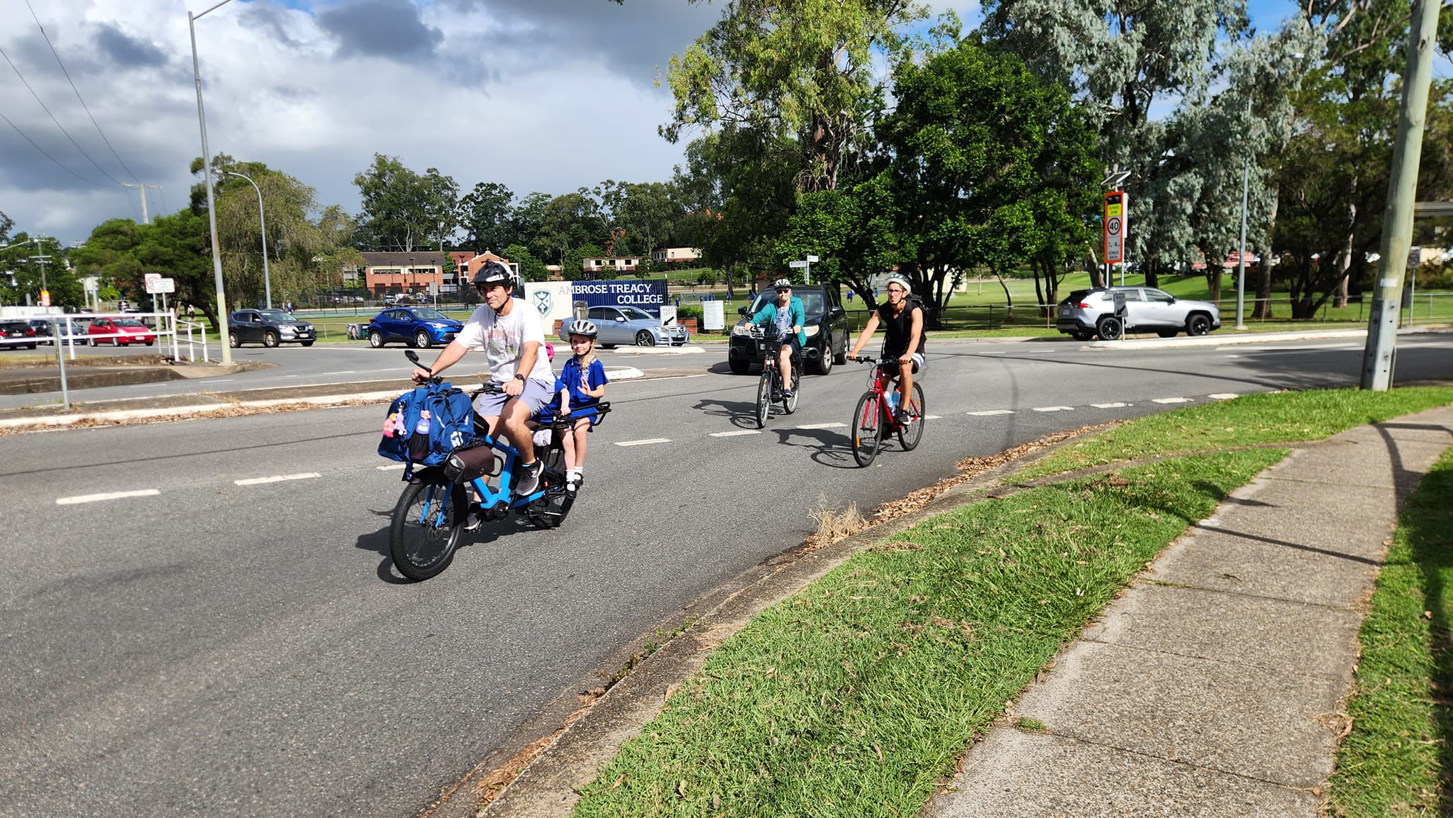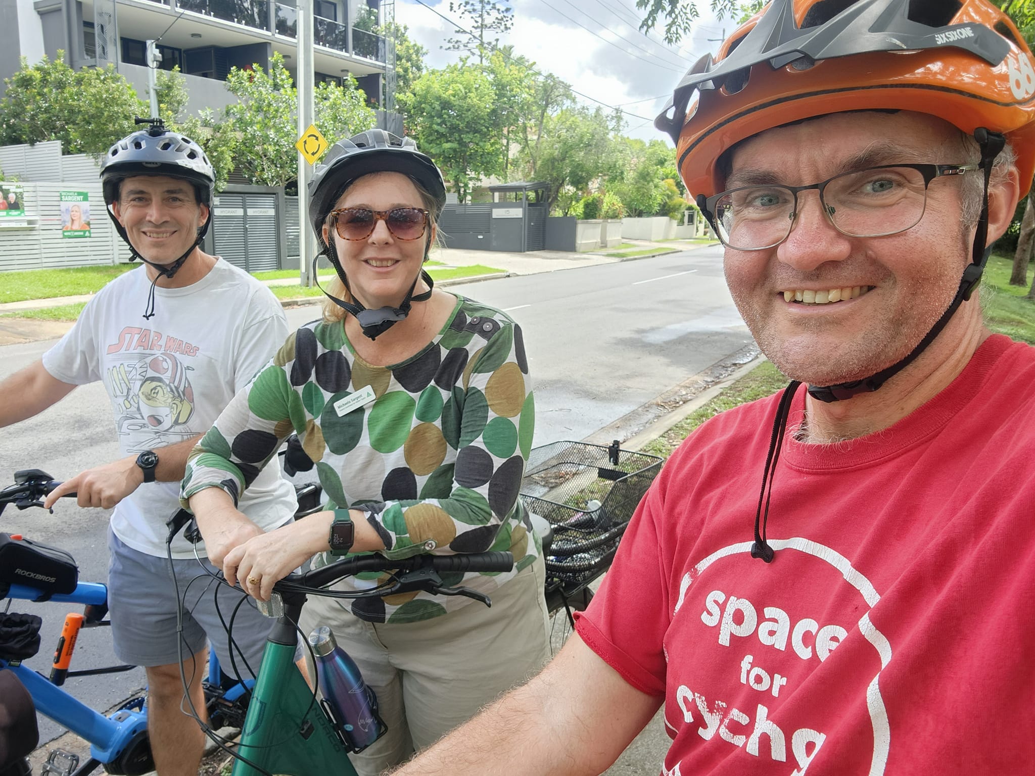 The crew from Brisbane West BUG have been doing a great job introducing Council candidates to the type of bike trips that local residents make regularly. Earlier this week, Michaela Sargent, The Greens candidate for Walter Taylor joined Chris and Michael in Taringa for a trip to pick up Michael’s children from Ironside State School.