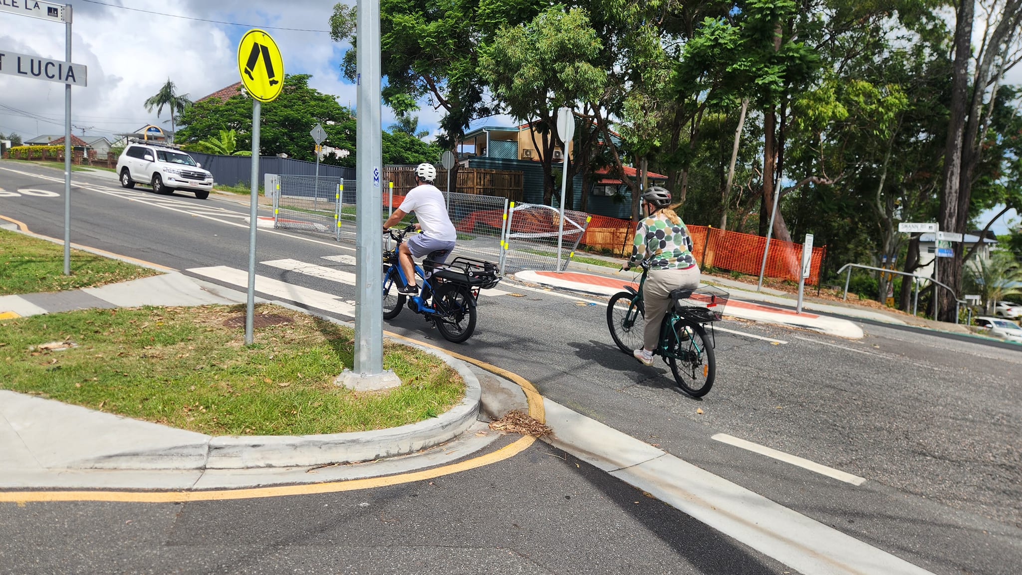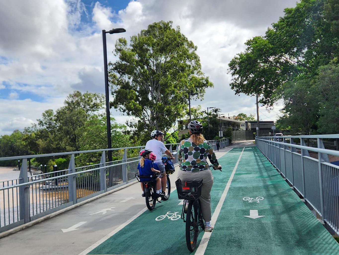 With the kids on board, the group headed down past St Lucia Golf Club towards Indooroopilly State High School. Michaela was aware how hazardous Lambert Road can be for the thousands of high school students that walk and ride to school, but she wanted to experience it first hand. Squeezed between parked and moving cars, it was a relief to reach the safety and calm of the Indooroopilly Riverwalk! From there the group rode along Witton Road and across Kate Street, which is a challenging intersection at any time, let alone during school pickup!