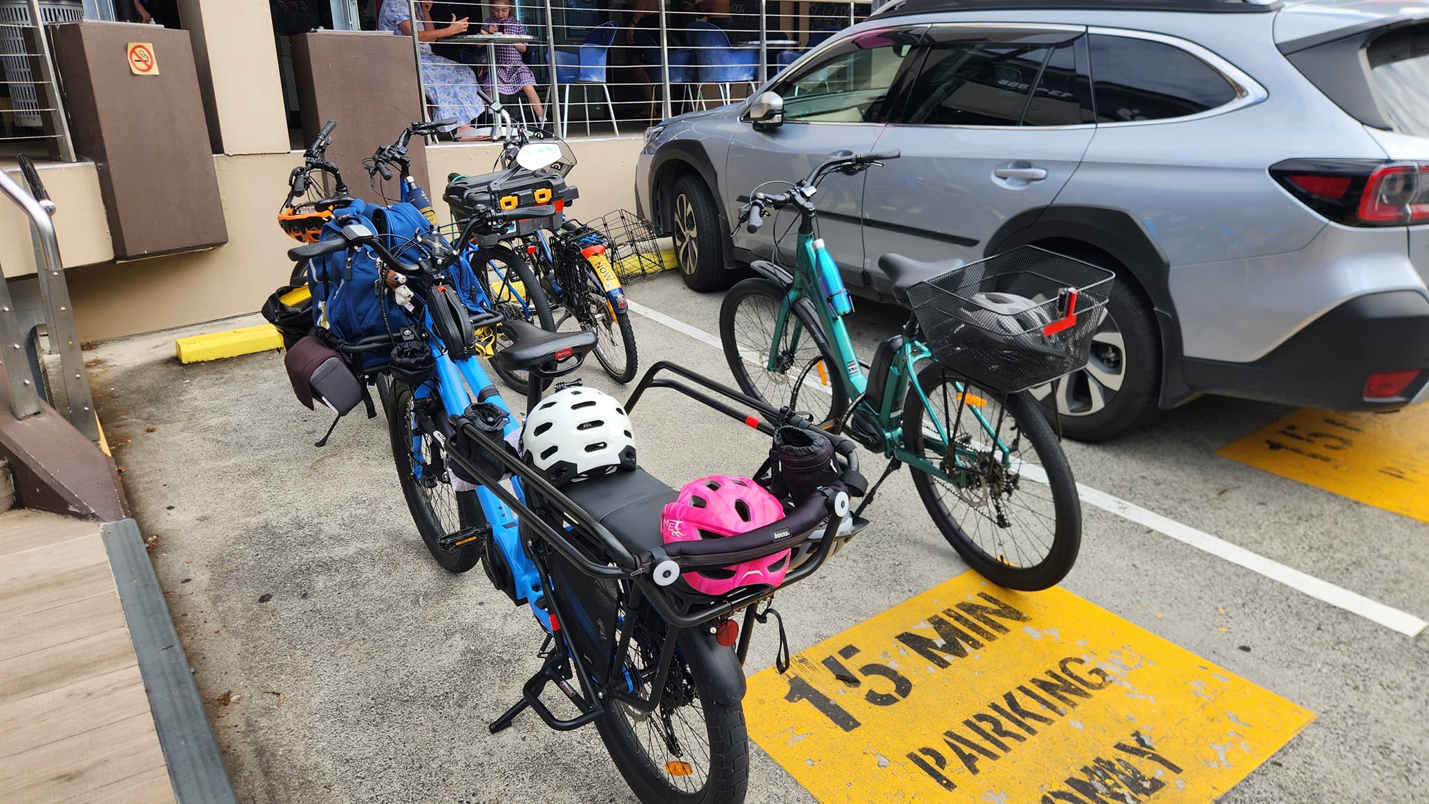 Having reached their destination at Metrowest Shopping Centre, the group parked their 5 bikes carrying 7 people in a carpark – better use of space than a single motor vehicle! And what’s better after a bike ride than ice cream?