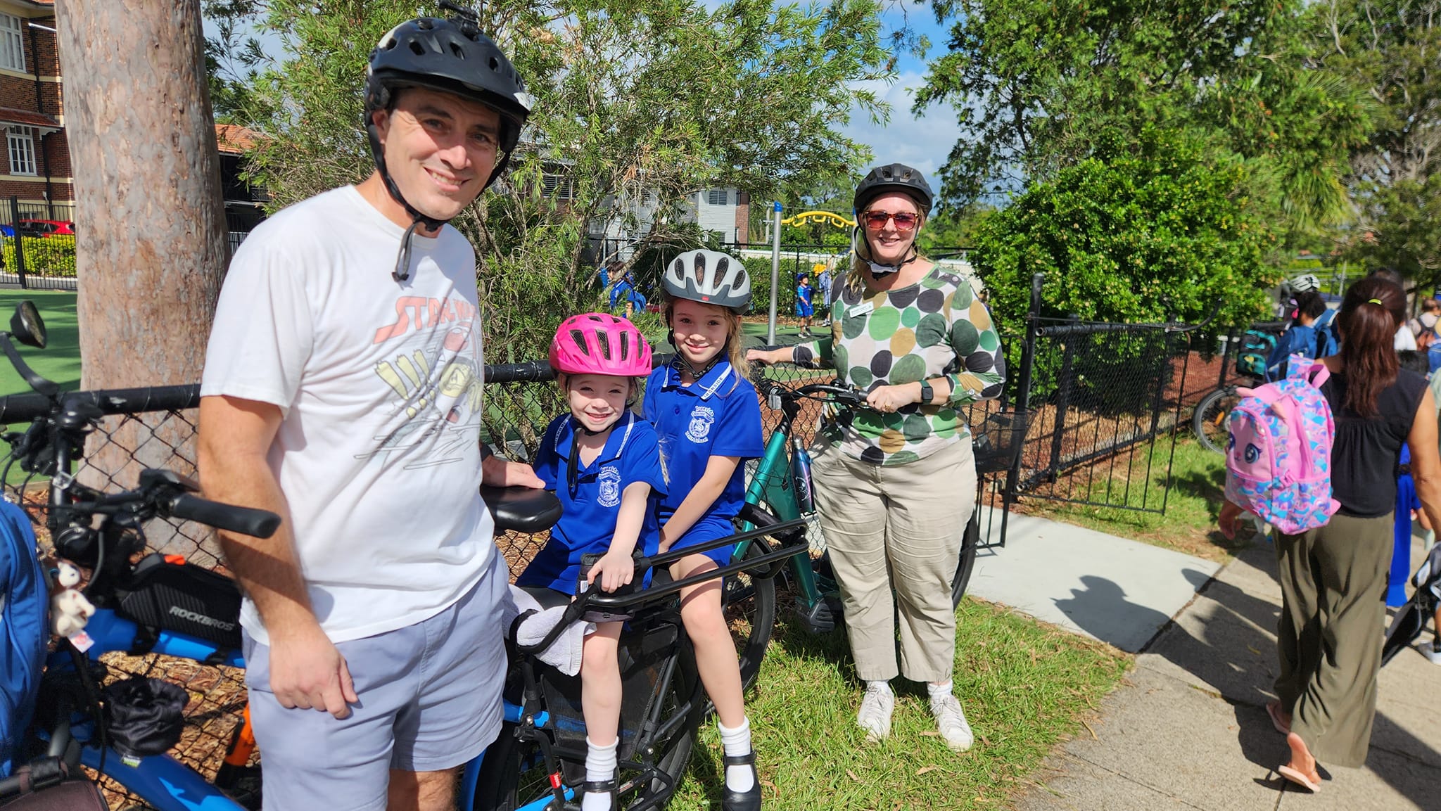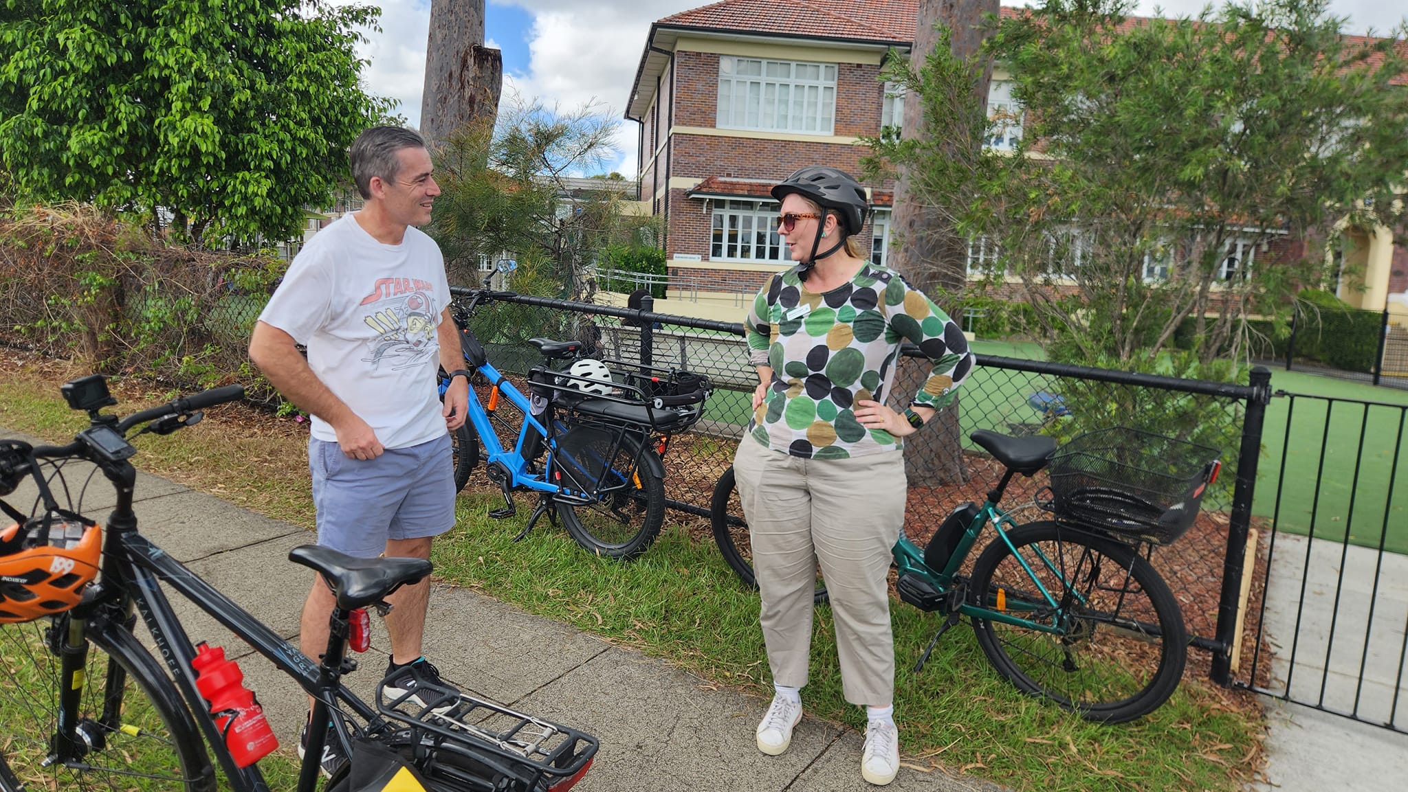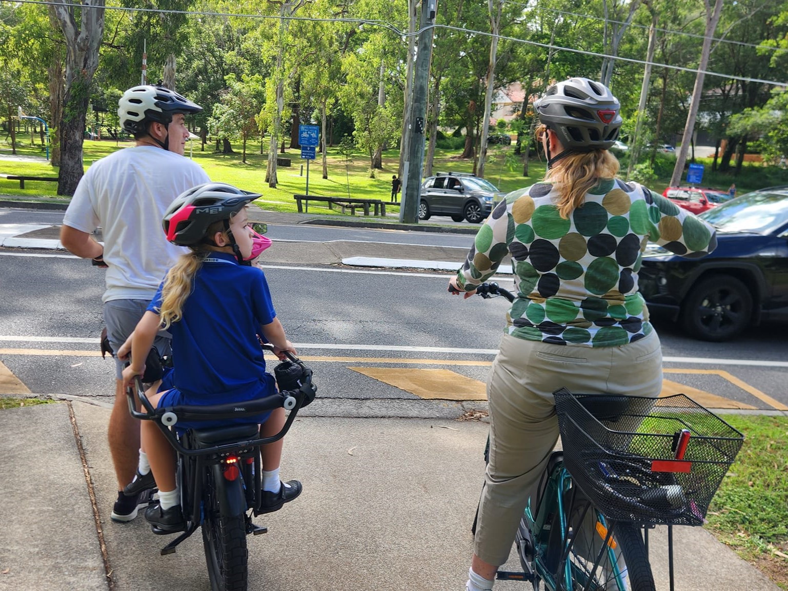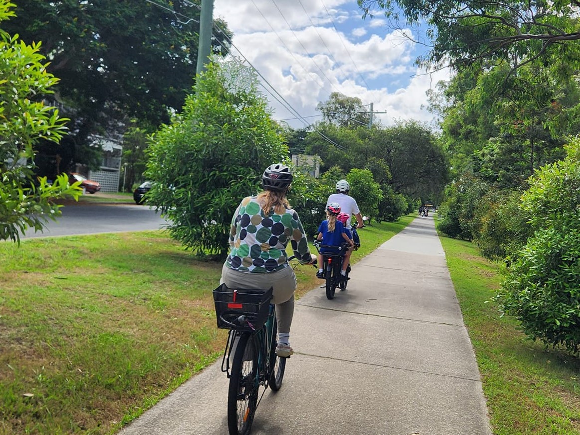 Once at the school it was great to see other parents arriving with bikes to pick up their kids. Michaela told us how her children went to Ironside State School and caught the bus home. However, because of traffic and the absence of pedestrian crossings, they would sometimes have to call her to come and help them cross the road! Independent, safe active travel to and from school should be a right our kids have, and we think it’s something our Council should prioritise.